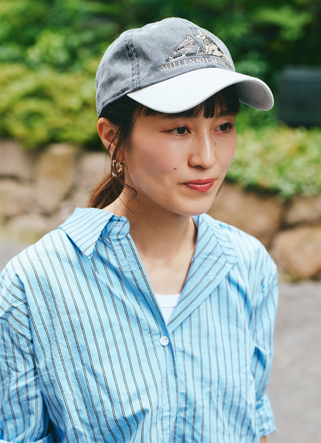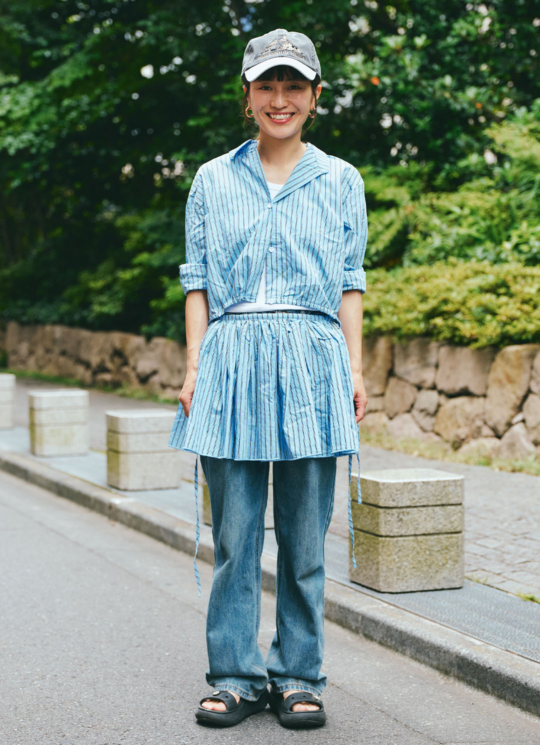 涼しげなブルーをメインに、スカート×デニムのレイヤードスタイルをシェアしてトレンドをキャッチ! ママはストライプ、キッズはギンガムチェックと夏らしい柄を投入して、メリハリのあるワントーンコーデに仕上げ。キャップでそれぞれ個性を出しつつ、親子でのお揃いが楽しいスタイルは見ごたえあり。