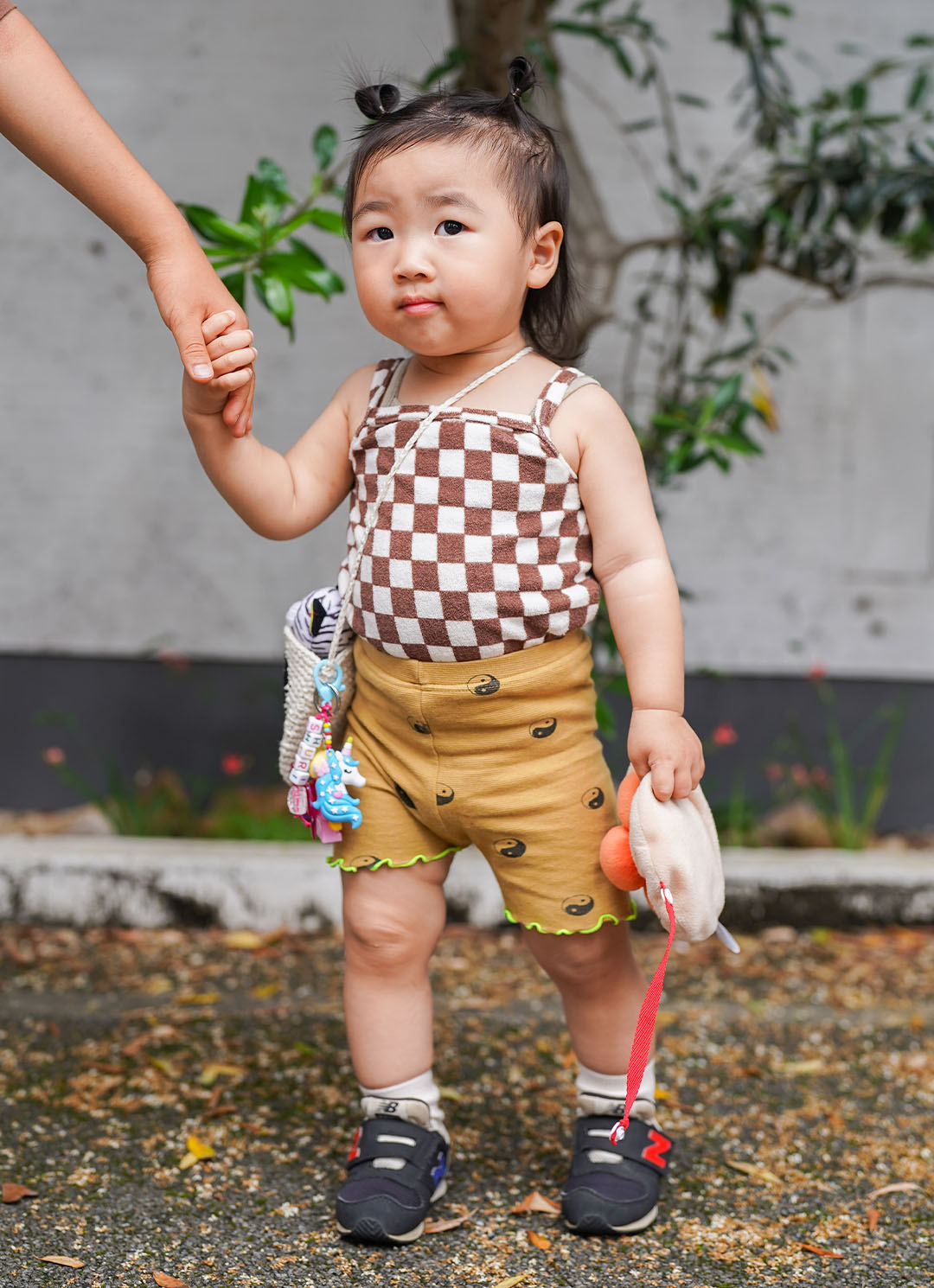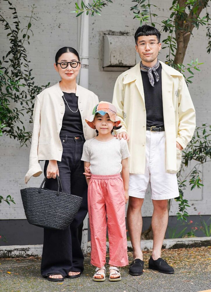 ハーフパンツやサンダルと動きやすいコーデながらも、小物でオリジナリティを出して陽気なフェススタイルにクラスアップ! キーカラーはこなれ感見えするブラウンに決めて、こだわりいっぱいのアイテムチョイスにセンスが光る、家族コーデは要チェック。