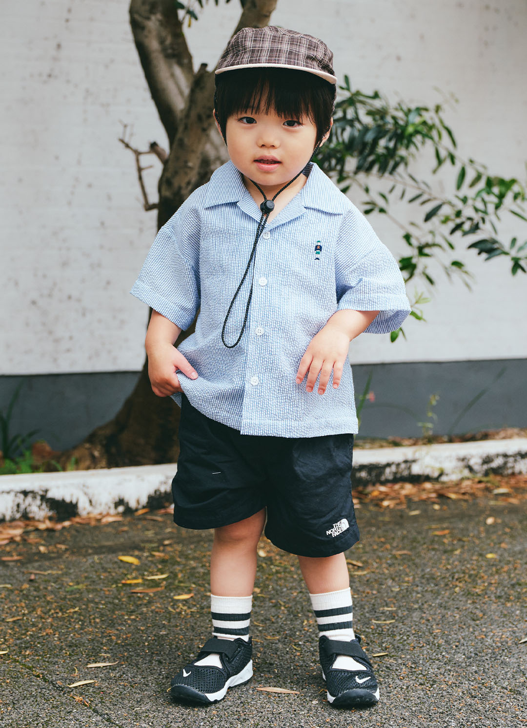 3. スポーティMIXな親子コーデ。上品アイテムでサマ見えが叶う