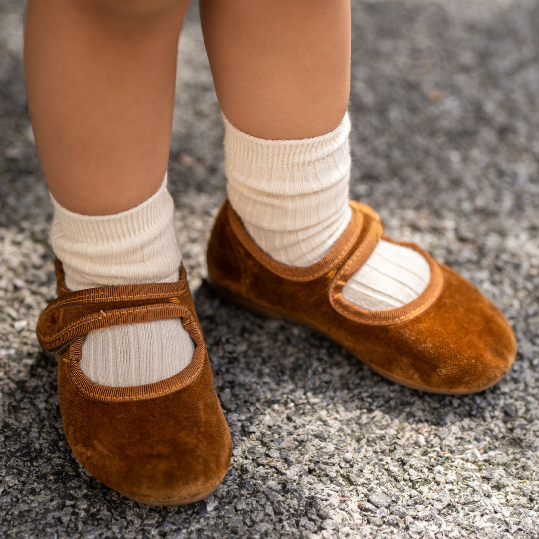 秋らしいブラウンが可愛い『シエンタ』のシューズをオン。ベロア素材をセレクトして、クラシックな足元にまとめ。