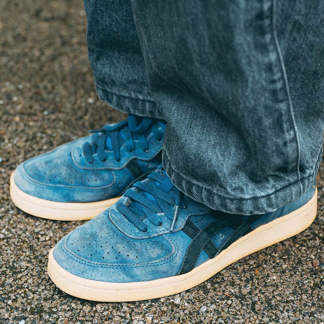 深みのあるネイビーブルーのスエード素材が秋らしい! ホワイトソールでライトで、重くなりがちな秋コーデを爽やかに仕上げてくれる。