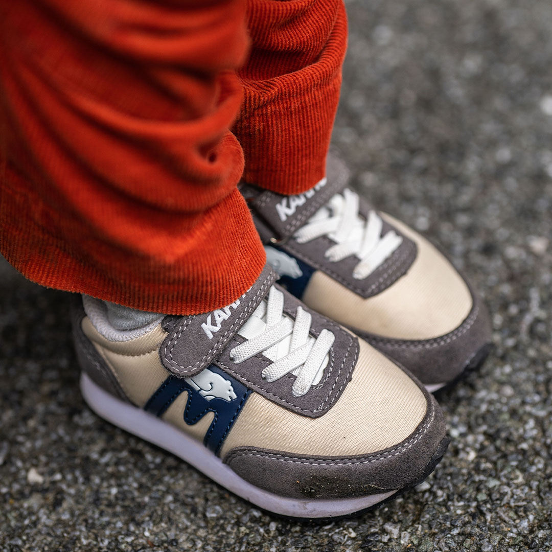フィンランド発ブランド『カルフ』のスニーカーは履き心地抜群! ブラウン系のバイカラーの新鮮なデザインがキュートな一足。