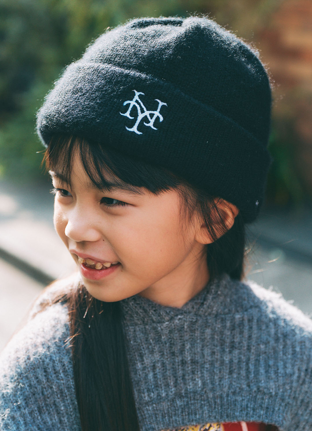 ブラックのニット帽でストリートモードを漂わせて。ロングヘアと相性抜群な冬アイテム。