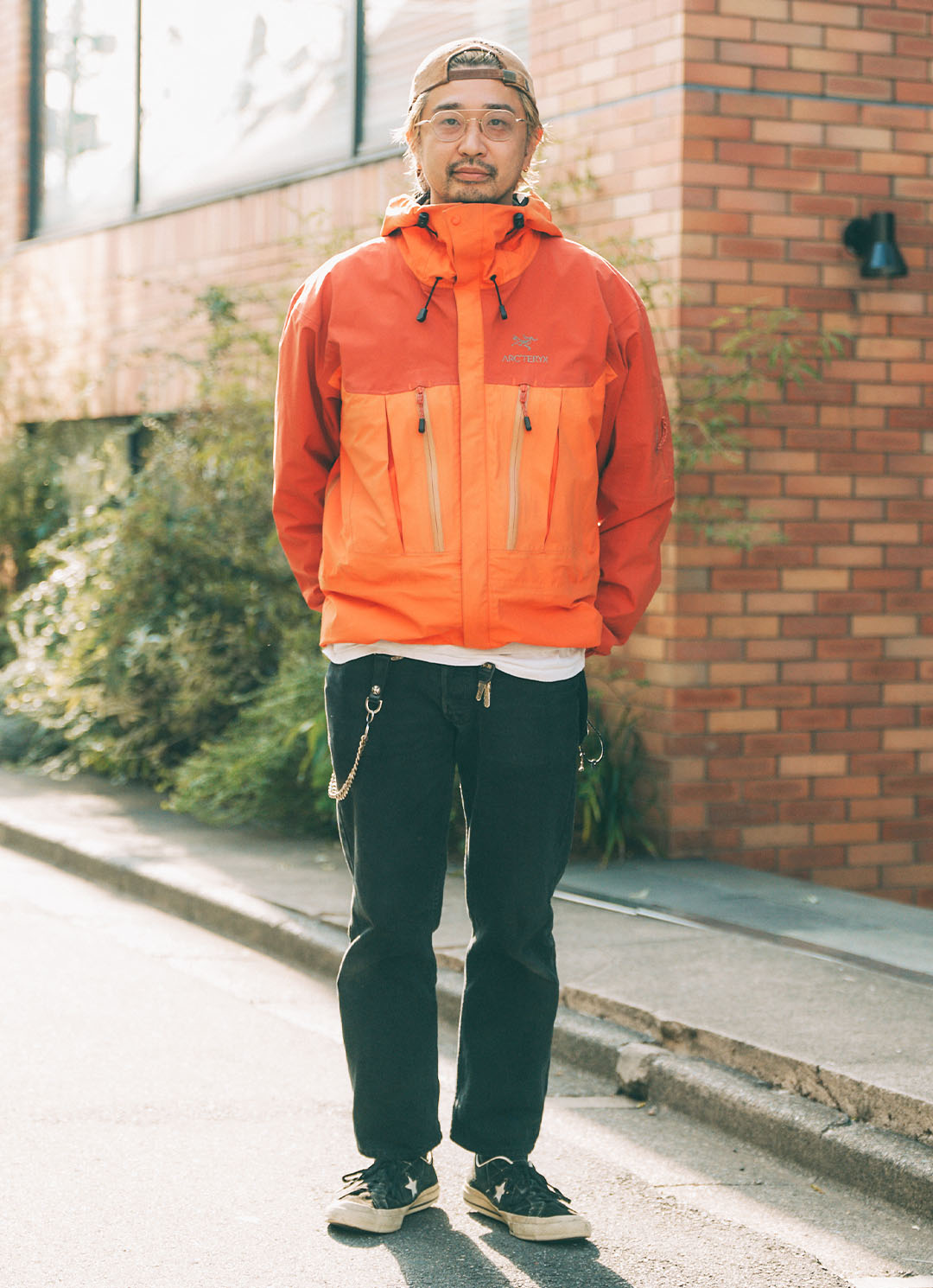 古着屋でキャッチしたブラウンのキャップがこなれ感抜群! シルバーフレームのメガネで緊張感をプラスしたのがグッド。