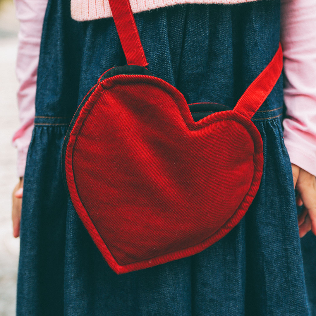 『イレイル』のハート型バッグがとってもキュート! ワンピースとの相性も抜群で、冬でも明るい気分になれるハッピーなアイテム。