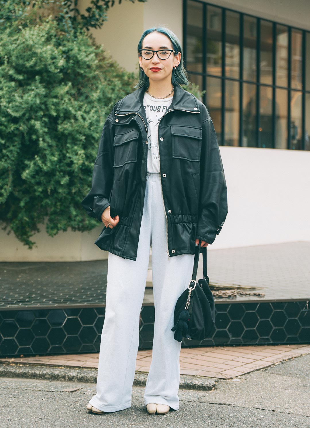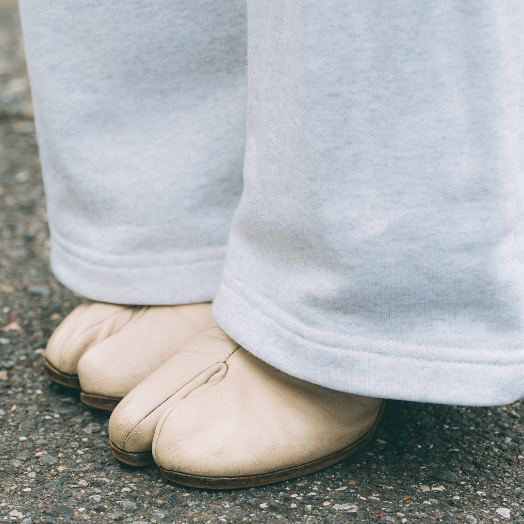 足元は『メゾンマルジェラ』の足袋ブーツをオン。スウェットボトムスをモードにアップデート!