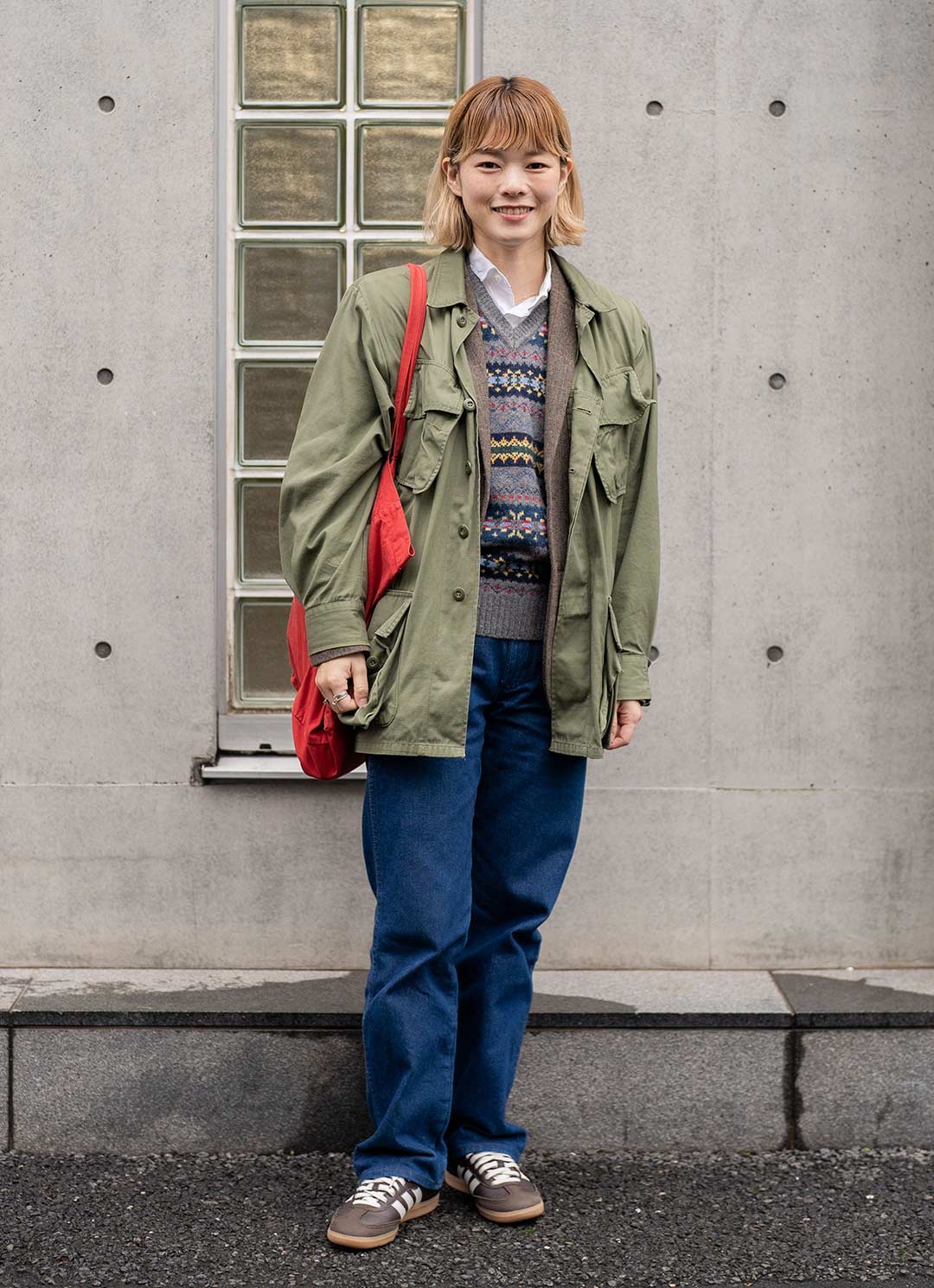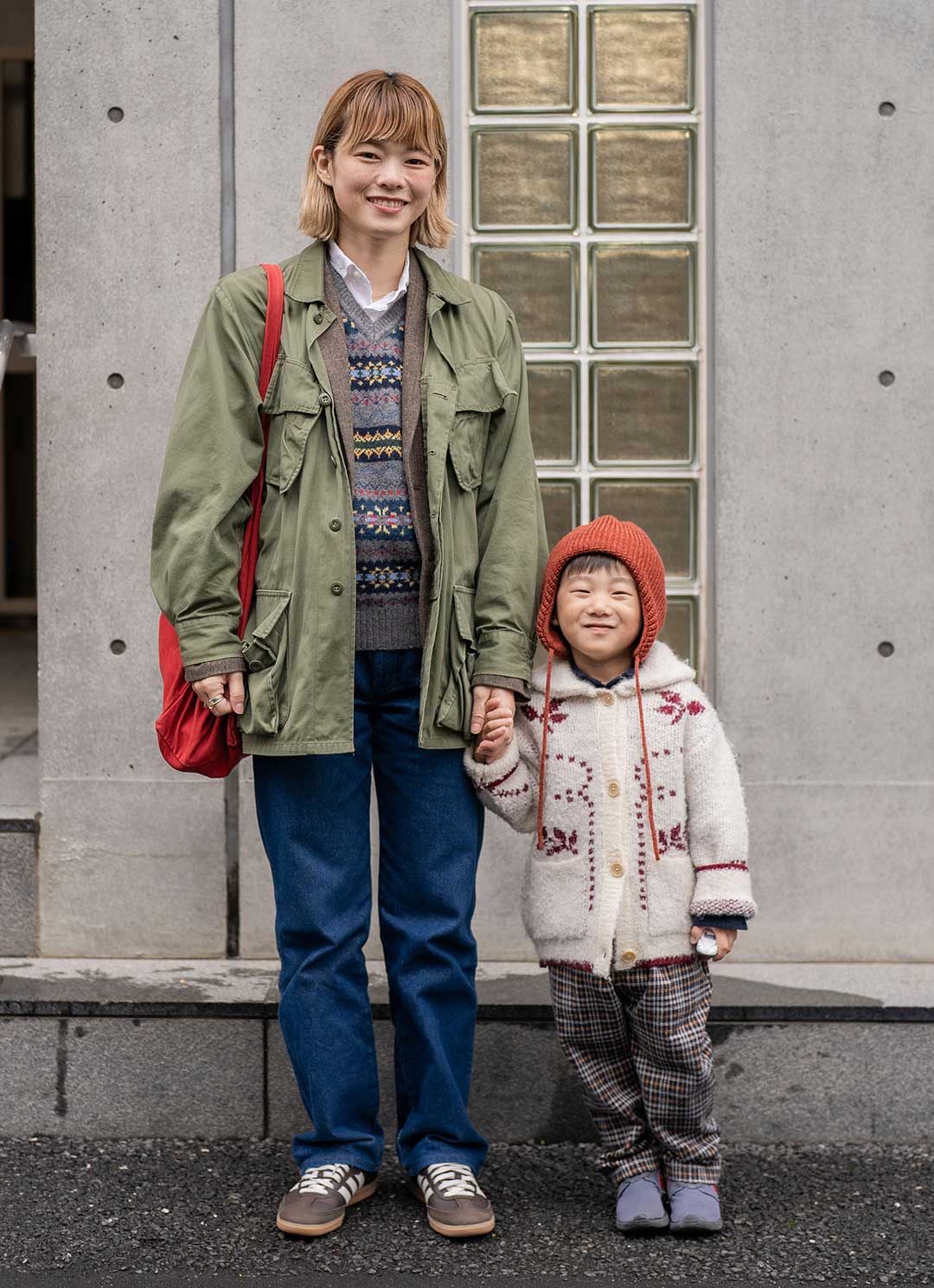 ヴィンテージMIXな親子コーデ。きちんとアイテム装いを格上げ