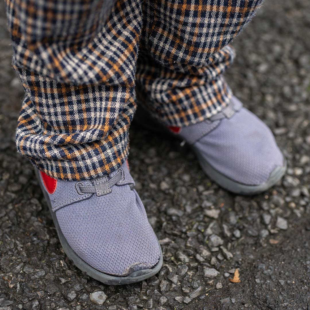 ライトグレーの『ナイキ』のシューズで、装いに明るさを照らして。すっきりとしたフォルムが、きちんと感がある一足。
