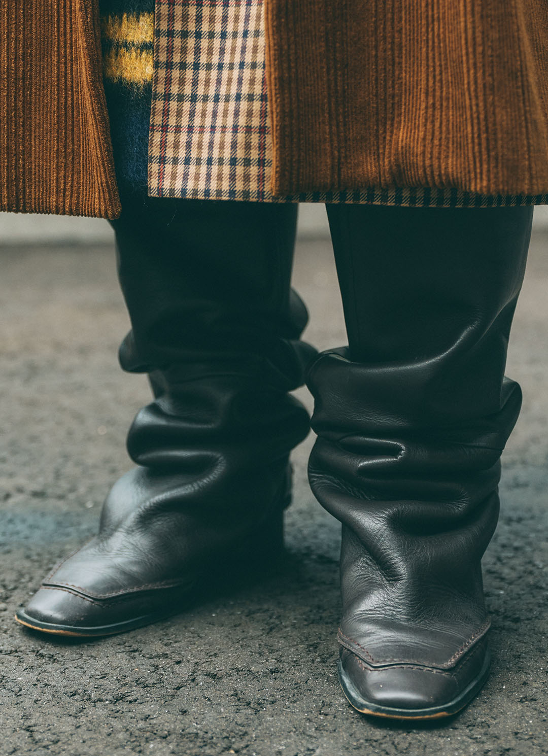 クシュっと感のあるボーホーチックなブーツが今どき! フレアなパンツと好相性なアイテム。