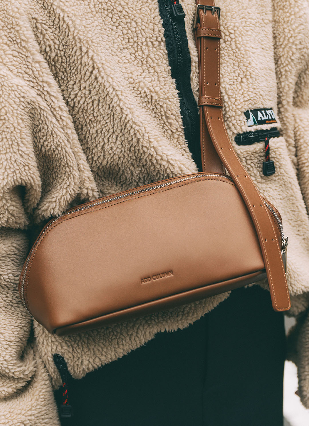 横長のシルエットが今どきな『アド カラム』のショルダーバッグ。ブランレザーで落ち着きがありながらも、大きく開く口元が使いやすい!