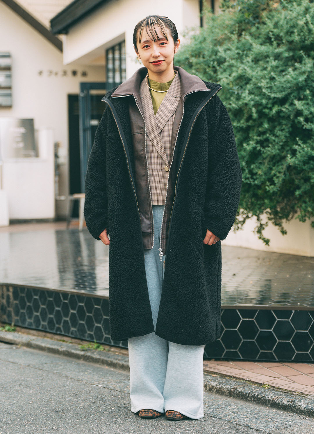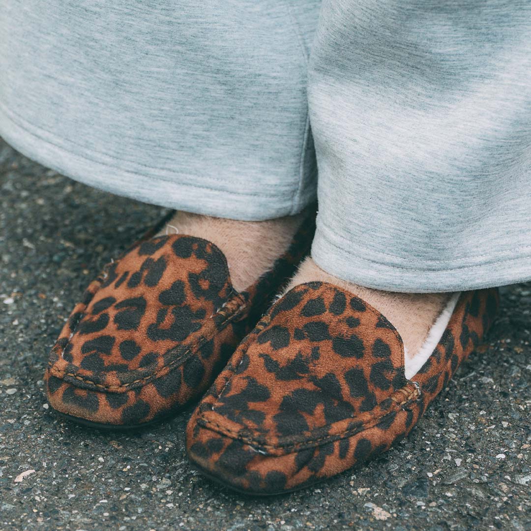 レオパード柄のボアシューズでスパイスをひとふり。強気な柄物も足元に持ってくると、取り入れやすい!