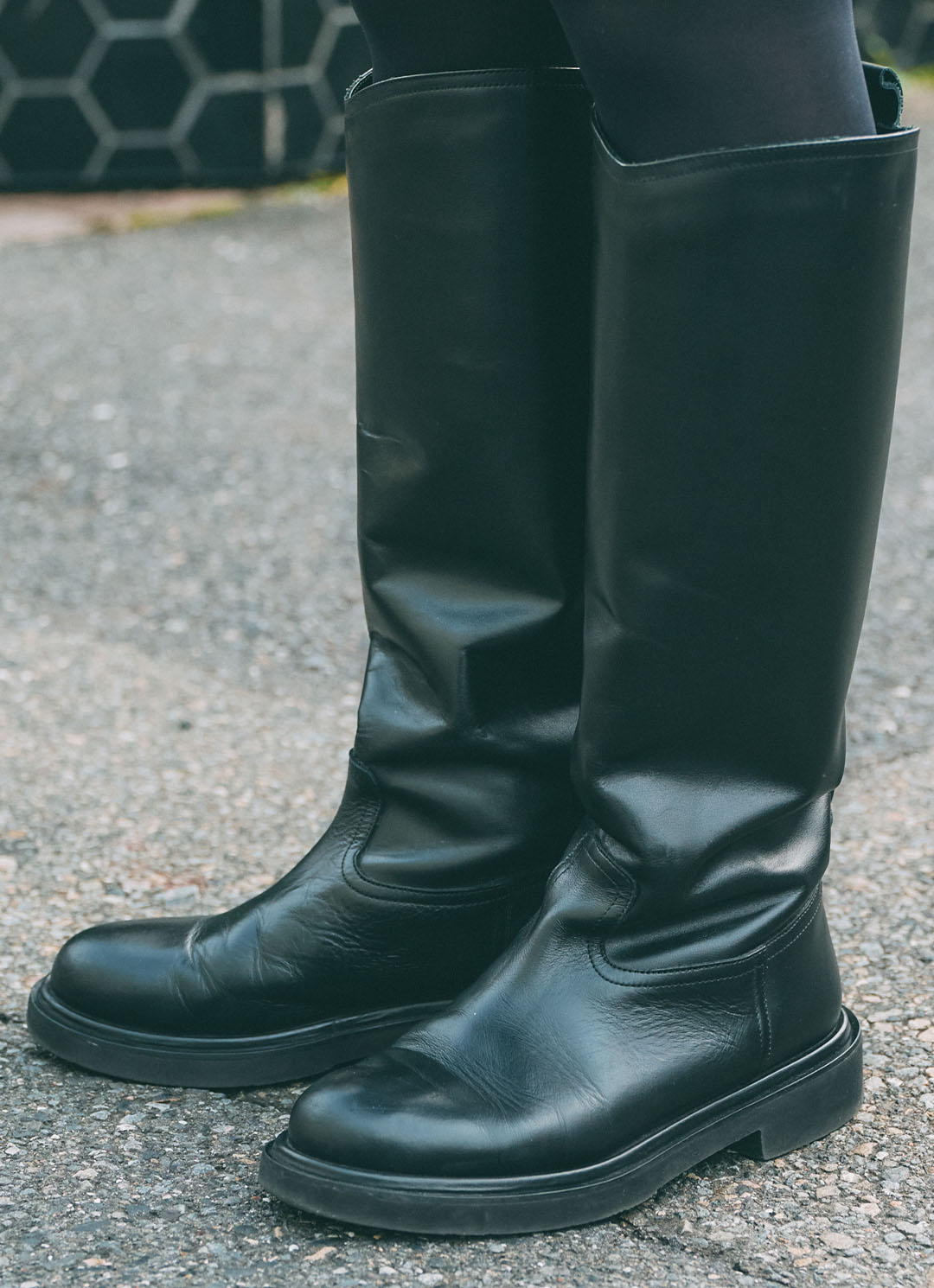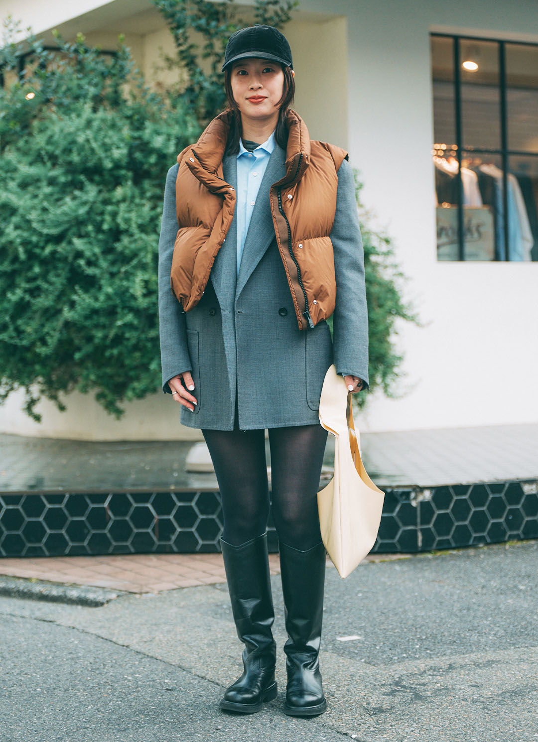 足元は『ギャルリー ヴィー』のロングブーツ。すっきりとしたシルエットで、アウターとの丈感も好バランス♪