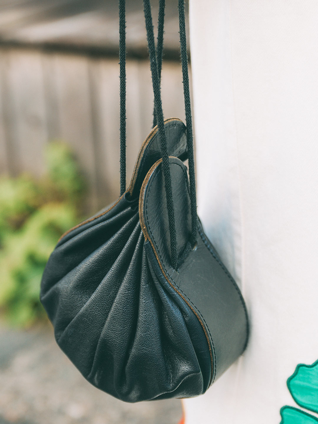 プリーツの効いたショルダーバッグがユニーク! ころんとしたフォルムでコーデに立体感をプラス。