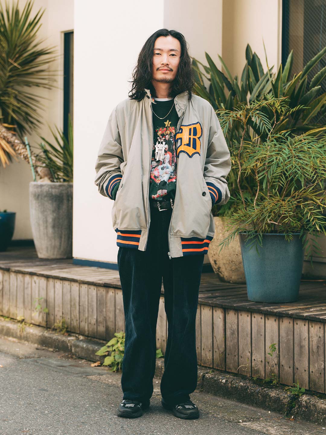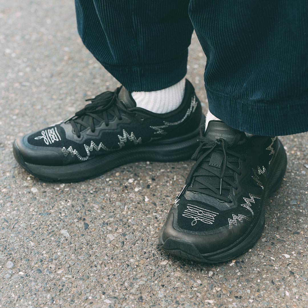 足元は『キーン』と『エンジニアド ガーメンツ』のビッグコラボシューズに決まり! グラフィカルなデザインがひと際目を引く一足。