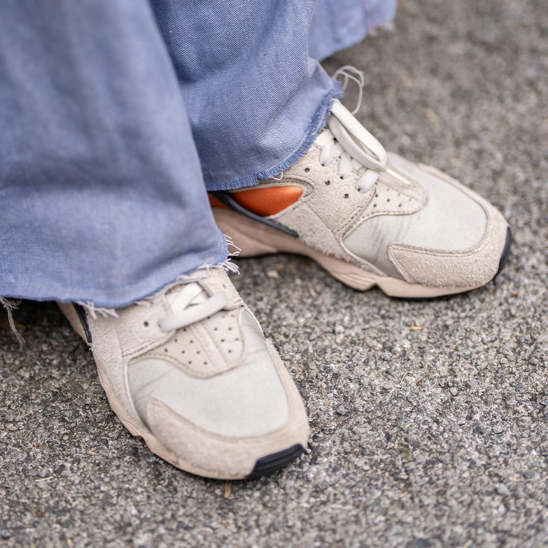 『ナイキ』のベージュスニーカーで軽やかな足元に昇華! スエード素材のニュアンスある表情が魅力。