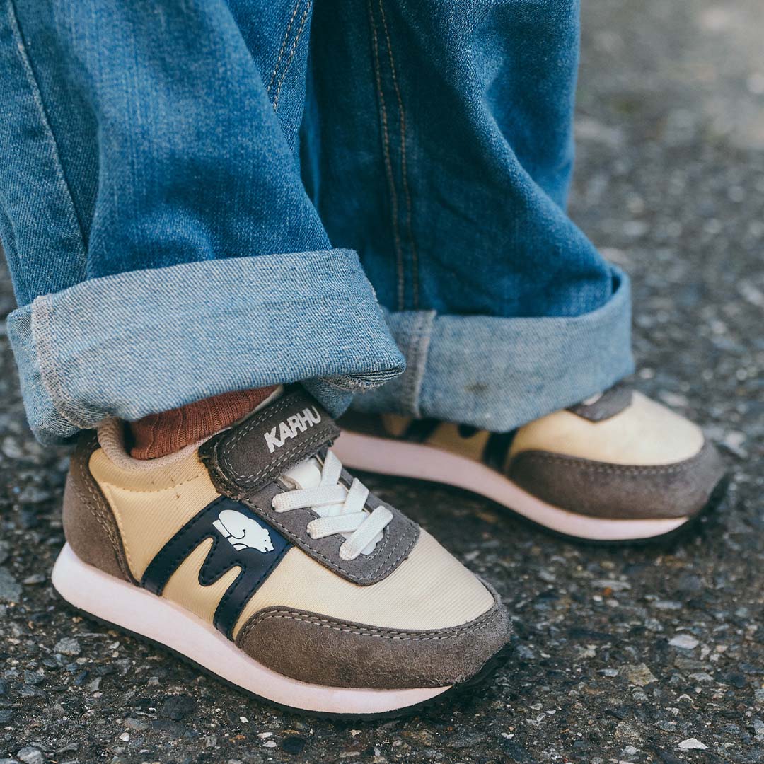 ブラウンカラーがこなれ感抜群なスニーカー。パパとブランドリンクして、春のお出かけが楽しくなる足元にアップグレード♪