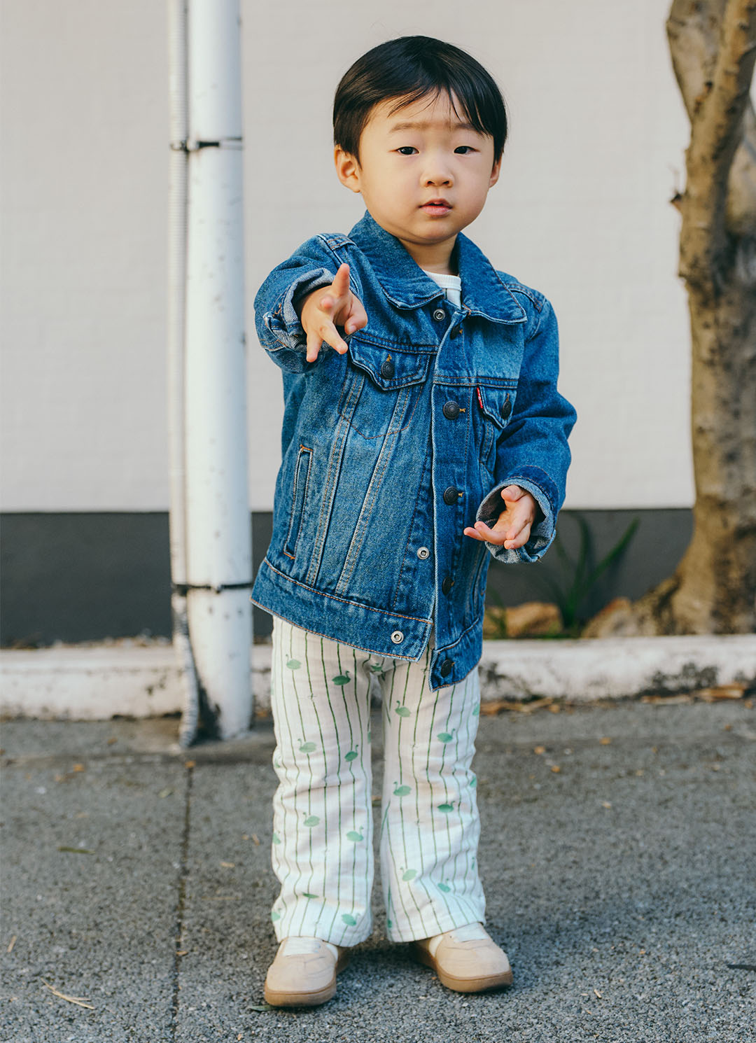 『リーバイス』デニムでつくる家族コーデ。ライトベージュで春らしく