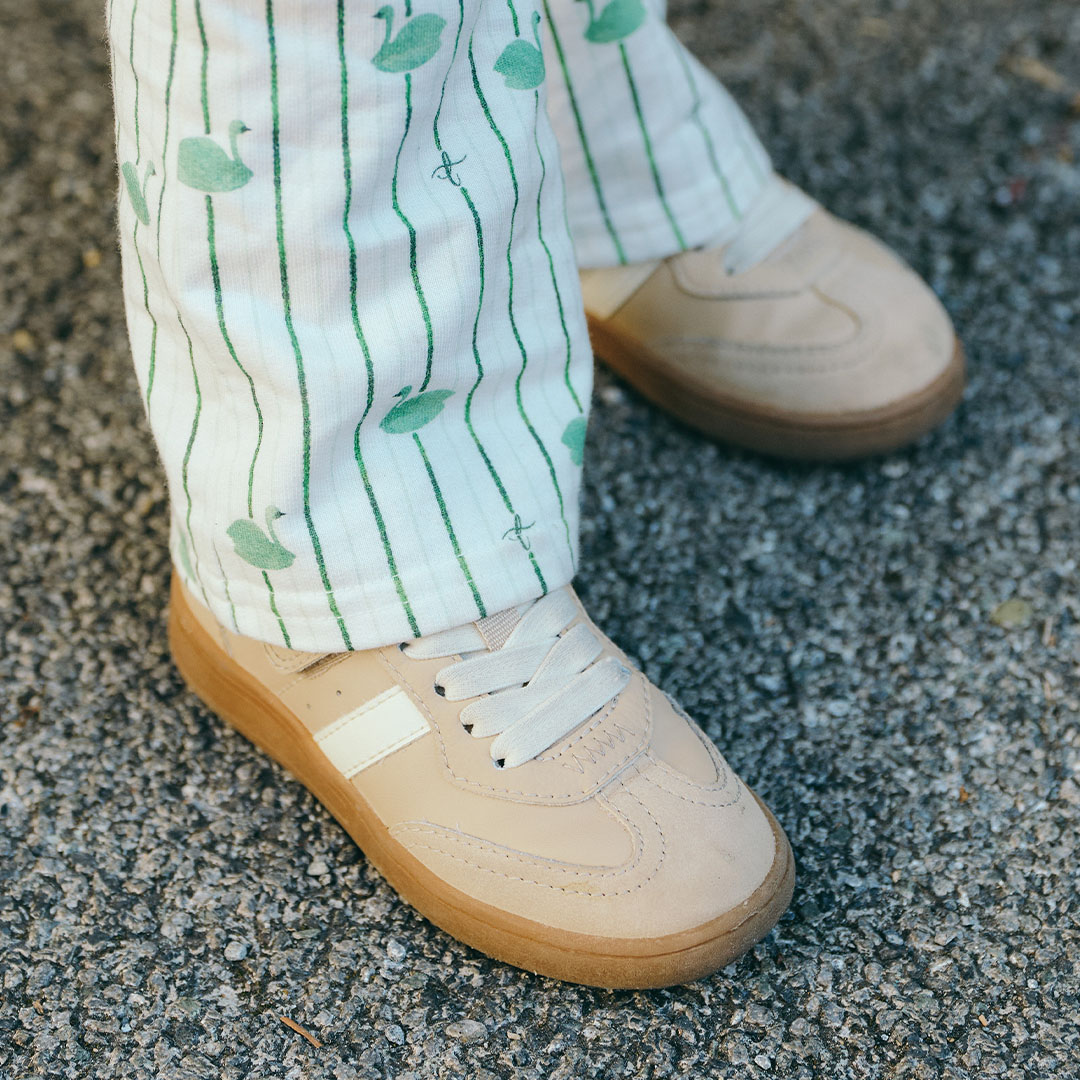 ガムソールが効いたスニーカーは『H&M』のもの。グリーンの柄ボトムス合わせて、春の芽吹きを思わせるやさしいカラーリングが◎。