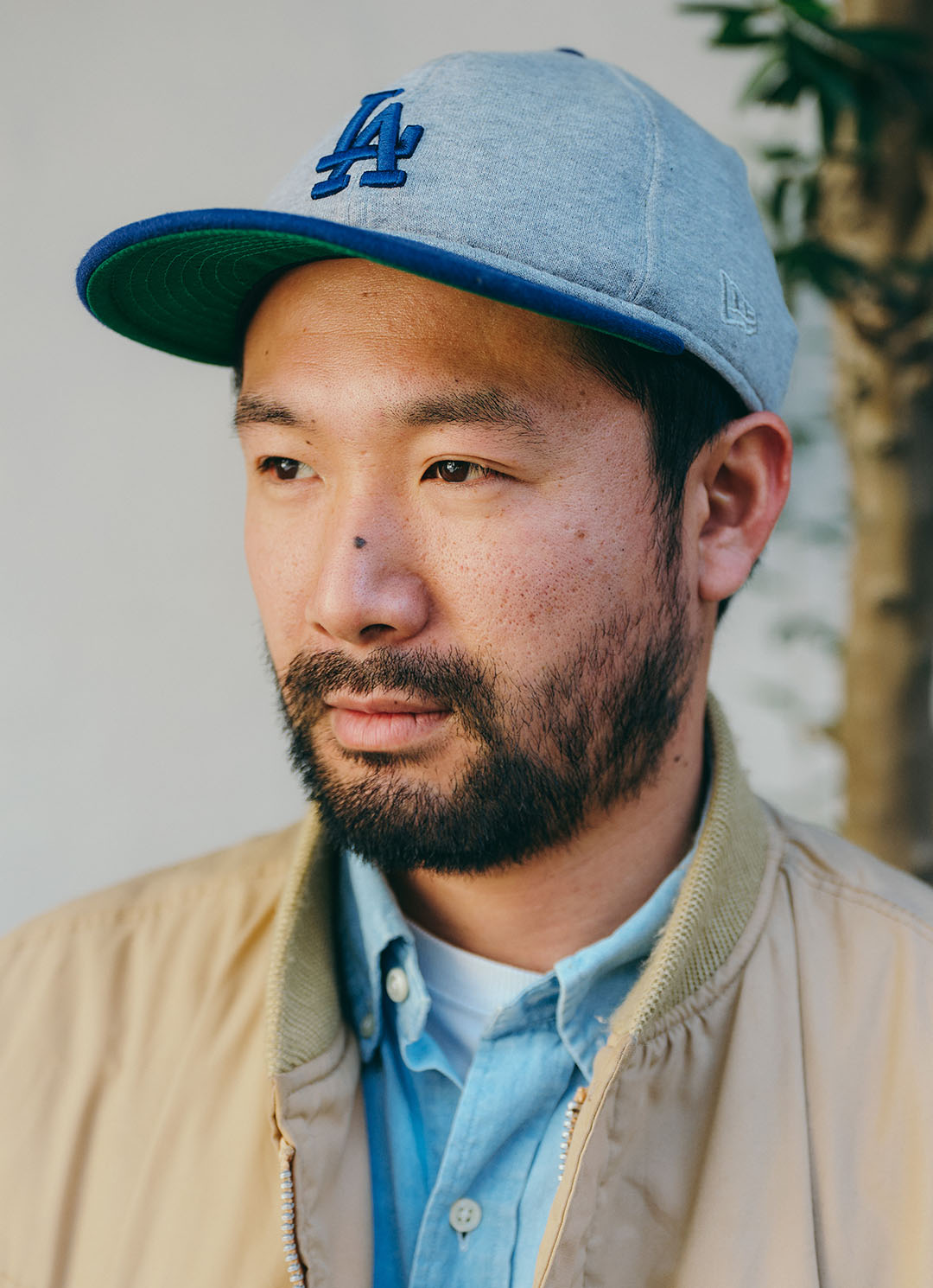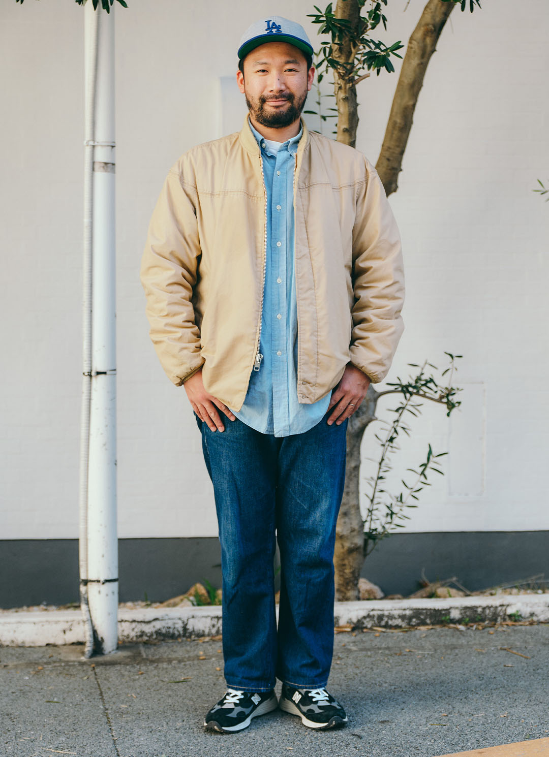 『ニューエラ』、『ループウィラー』そして『ビームス プラス』のトリプルコラボのキャップをオン! ストリートムード漂わせて、シャツスタイルを崩したのがグッド。